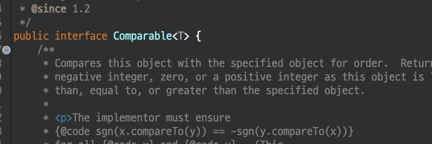 Comparable 인터페이스는 위와 같이 정의 되어있다. 보다시피 제네릭 타입을 받는 다는 것을 알 수 있다.